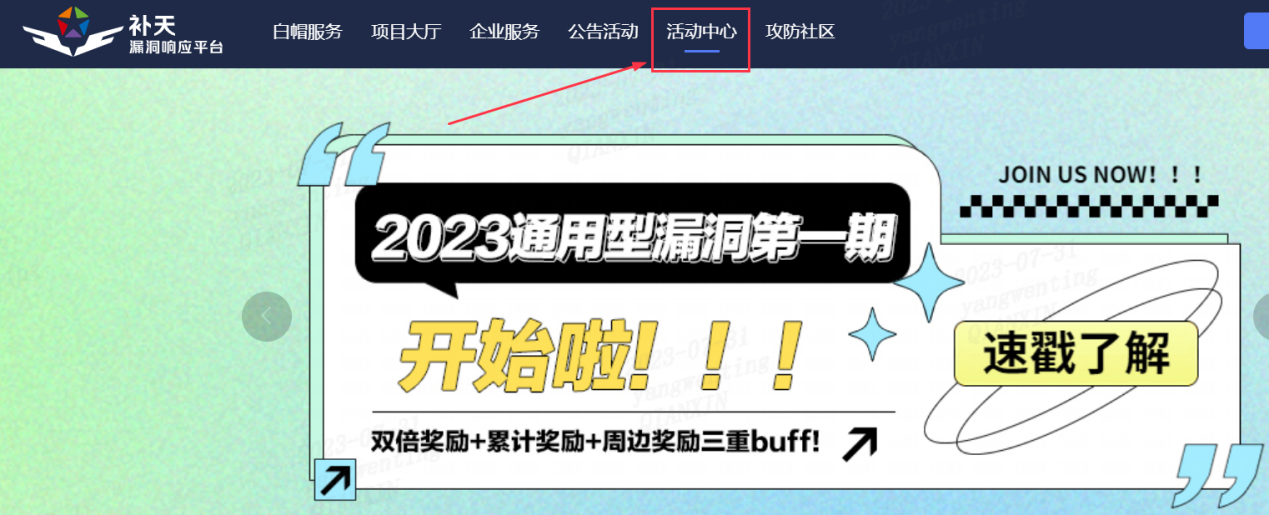 2.进入补天官网【活动中心】进行报名,有些活动需要在活动中心报名后才可参与。